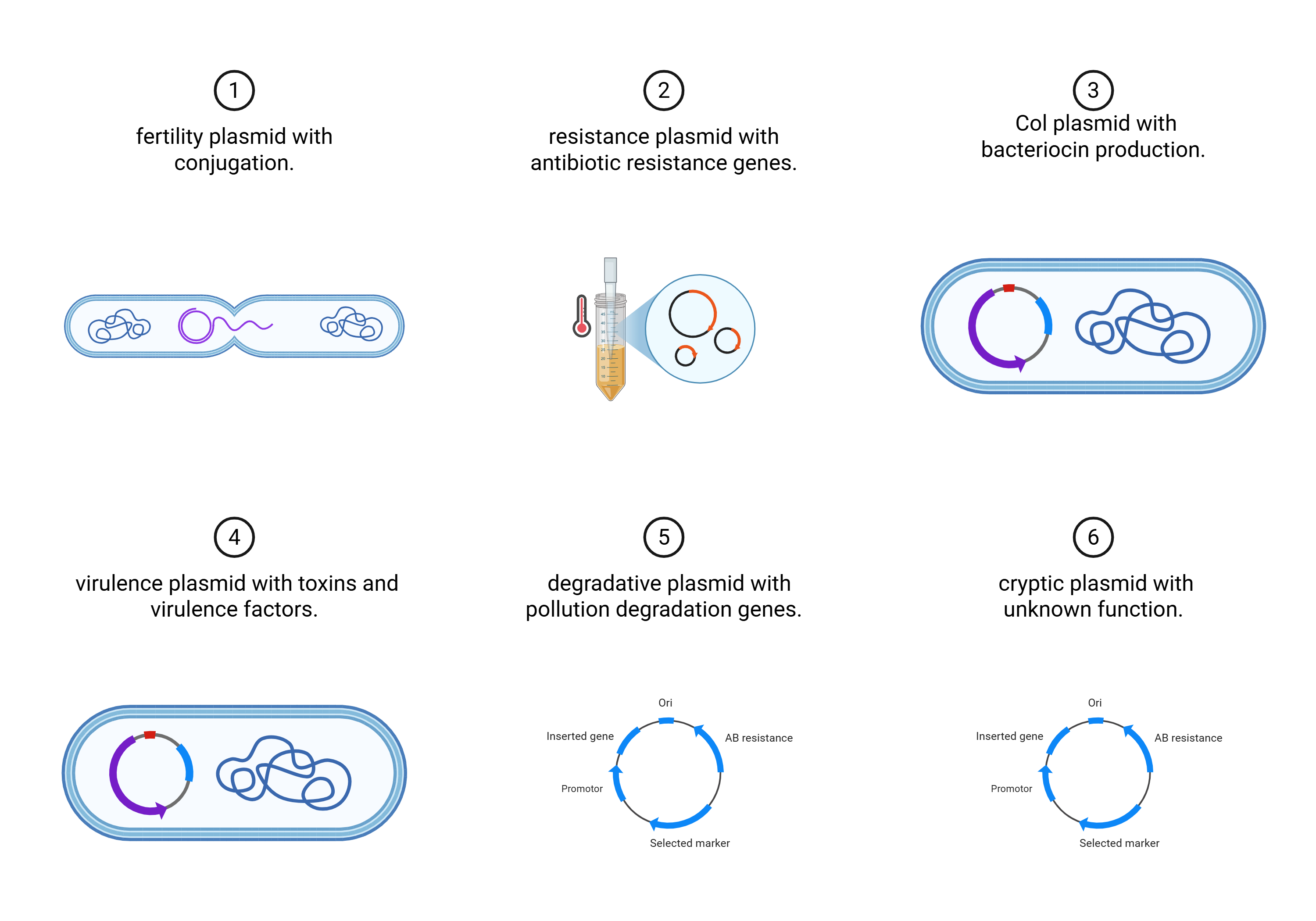 The various types of plasmid including fertility, resistance, virulence, and degradative plasmids play vital roles in both natural bacterial processes and advanced biotechnology applications.