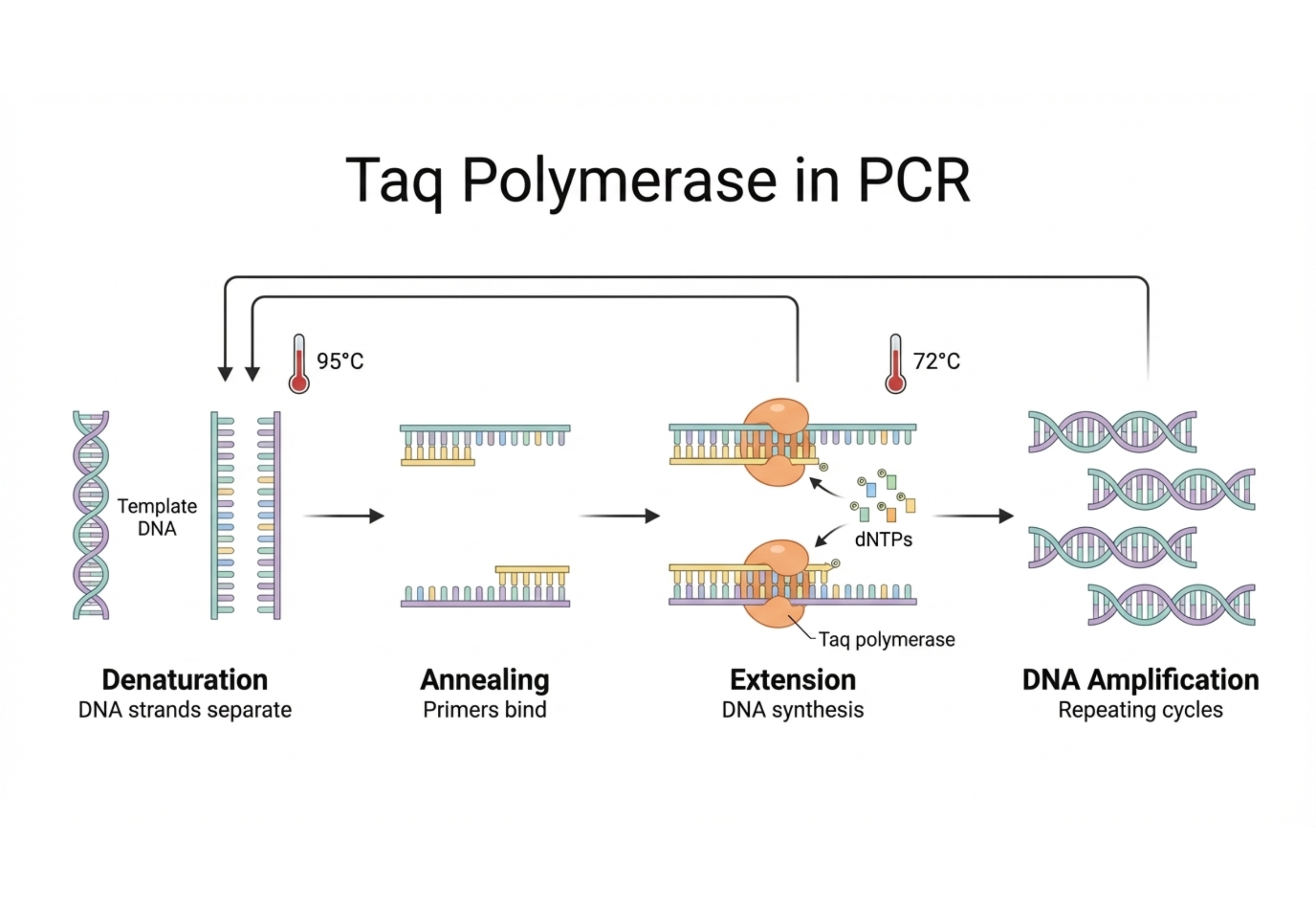 Can withstand high temperatures (up to 95 °C), which is essential for PCR (Polymerase Chain Reaction).Unlike most enzymes, it does not denature during the DNA denaturation step. -