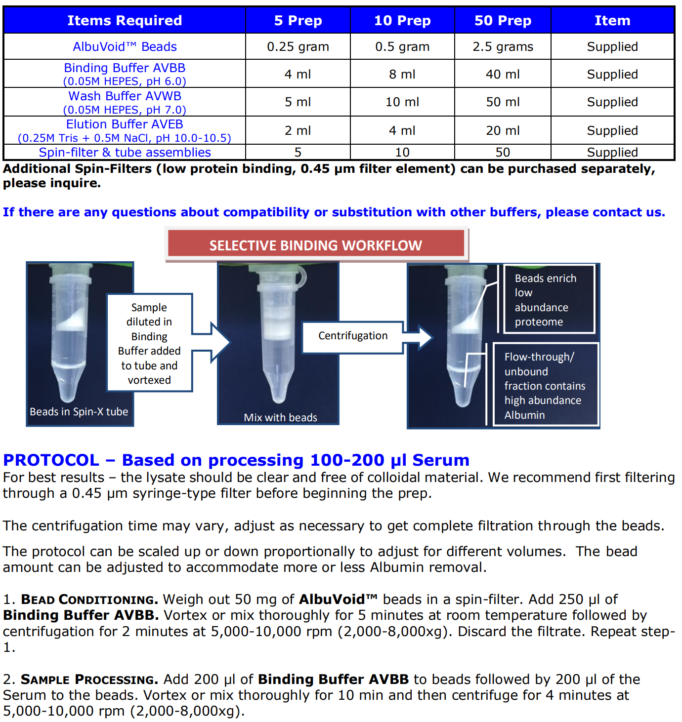 | AVS-05 | AlbuTrial™ Kit - 1 gram AlbuSorb™ Kit & 5 Preps AlbuVoid Kit |